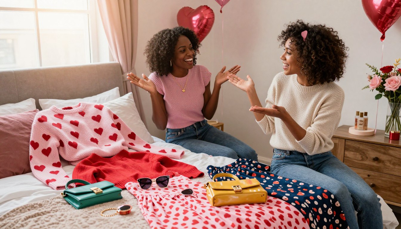 We keep things relaxed. We take breaks for drinks and photos. It's a special day for us. With a little planning, our day together is unforgettable! Choosing Galentine’s looks together: outfit inspiration and styling tips We love planning Galentine’s outfits for every style. Choose a theme to make shopping fun and fast! Try on different pieces together to find the perfect fit.